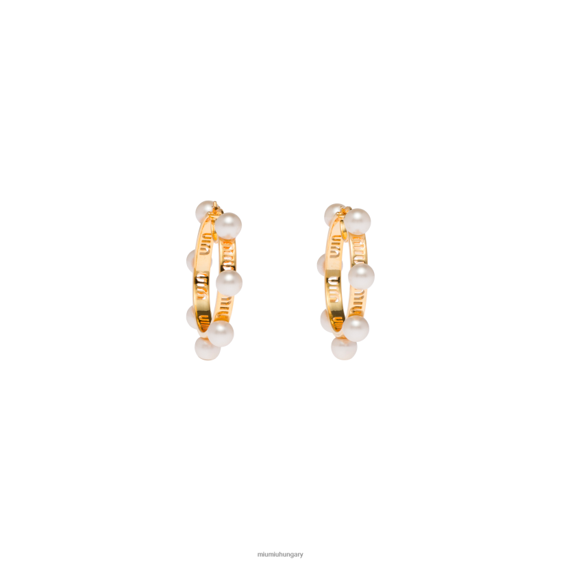 A MIU Miu logó a gyöngyfém fülbevalók válogatásának főszereplőjévé válik. ikonikus szimbólumként kiemelkedik, és modern csábító tartozékot ad. /li>