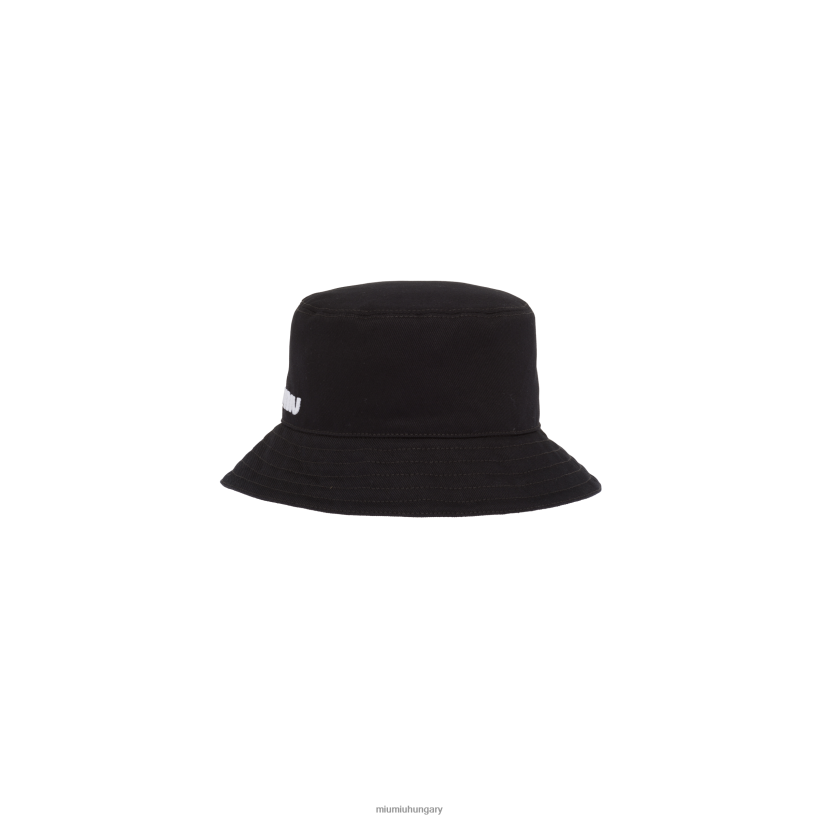 ikonikus kiegészítő, a vödör kalap fúróból készül, és a hímzett Miu Miu logóval díszítve.