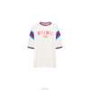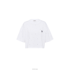 A friss és ironikus karakter jellemzi ezt a rövid ujjú tengerész stílusú pamut tetejét. A kifinomult részletek a ruhadarabnak romantikus, retro érintést adnak. A hímzett Miu Miu logó és íj, a márka egyik szimbóluma, díszítse a ruhadarabot. A tengerész gallérja