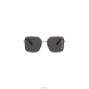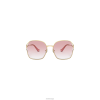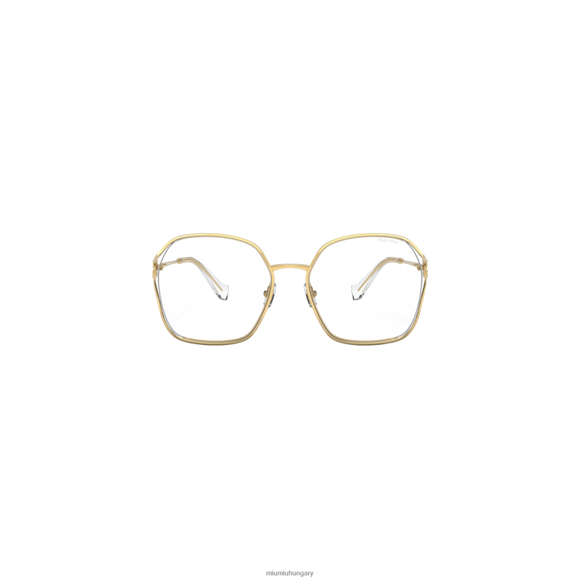 Fémkeretek kifinomult, nőies csábítással. A túlméretezett keretet olyan vékony fém felnik hangsúlyozzák, amely egy ponton hagyja a nagy lapos lencséket, hogy egy új függőleges Miu Miu logóval összekapcsolódjanak az egyenes templomok csuklópántjába.