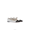 Az ikonikus Miu MIU balerinákat az eredeti kötetekkel újraképzték az új kollekcióhoz, köszönhetően a lapos formájú talpnak, amely hibrid stílusú keverési romantikát és lázadó szellemet hoz létre. Csatokkal és szalagokkal ellátott hevederek kiegészítik a cipőt.