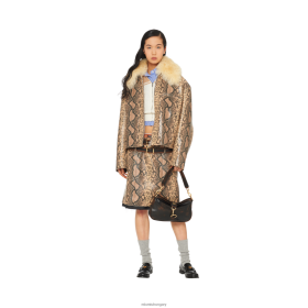 jelen van a 2023 tavaszi-nyári show során, ez az új szoknya a Nappa bőr texturált hatásainak köszönhetően megemeli minimalista vonalait. A ruhadarab szándékosan ráncos textúrája kifinomult szüreti hatást hoz létre, amely hangsúlyozza a divat fogalmát, mint a való élet szerves részét. A logó javítás megkülönböztető érintést ad a ruhadarabhoz. Bezárás a hevederrel