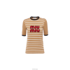 A Csíkok Világa megfelel a Miu Miu provokatív karakterének ebben az új pamut legénység-nyakú pulóverben. A kivágott vonalakat bordázott kötött díszítés kíséri, és kortárs megjelenést kölcsönöz a ruhadarabnak. Az intarsia logó kontrasztos színű, a szegélyen egy ikonikus megjegyzéssel tölti be a formatervezést.