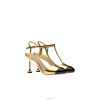 Az ikonikus kéttónusú kialakítással játszva a Miu Miu kifinomult szivattyúk gyűjteményét mutatja be. A T-heveder felső cipője belép az esti ruhásszekrénybe, aláásva a klasszikus stílusszabályokat. li> bőr talp