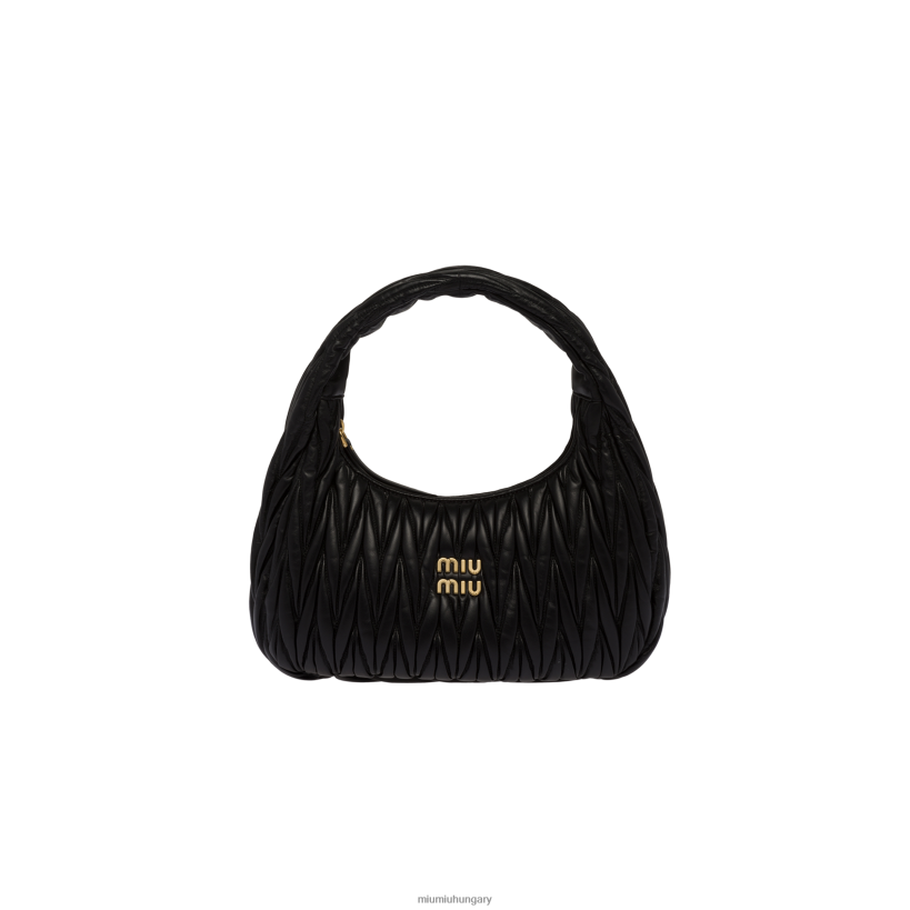 A MIU Wander táska, újraértelmezett szezon után, a MIU MIU kollekciók ikonikus kiegészítőjévé vált. A Matelasse Nappa bőrből készült táskát a finom kivitelezés által létrehozott kifinomult, háromdimenziós. A hobo alak, a retro inspirációk és a kortárs elegancia keverése, a modern nőiesség új szinonimájává válik. -Tone hardver