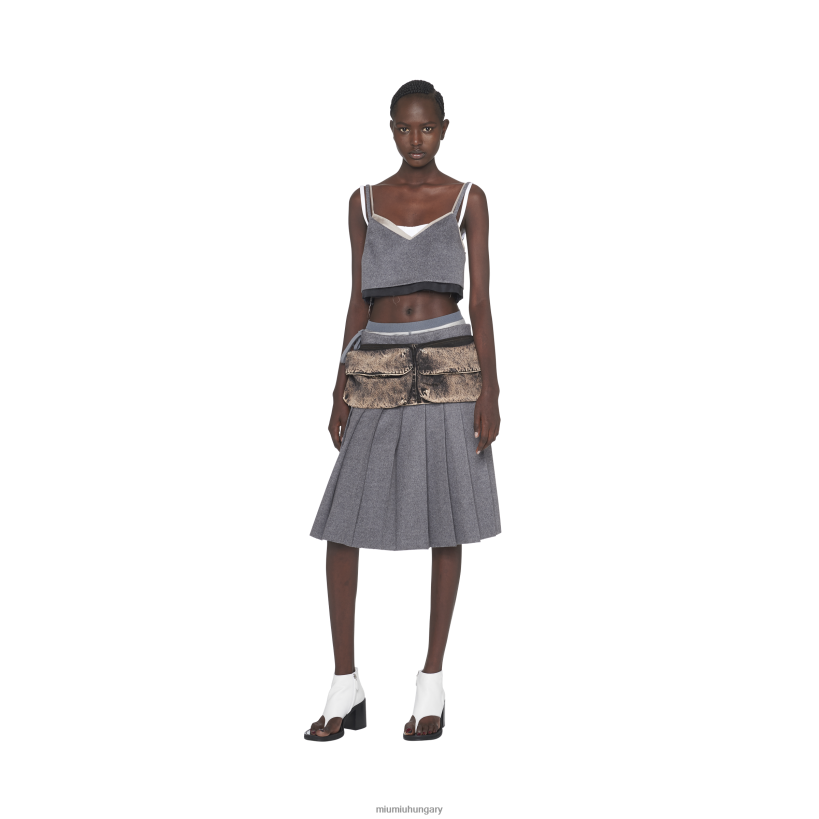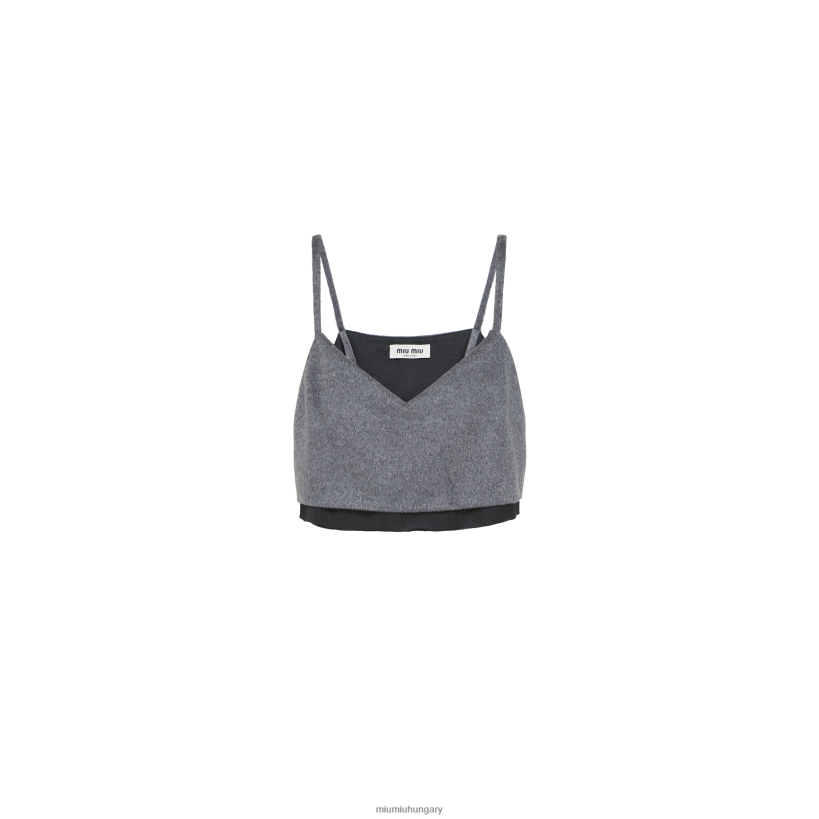 Ez a velúr teteje, amely a 2023 tavaszi-nyári show során jelen van, az anyagok, színek és javaslatok rétegezésének eredménye a bőr csupaszításához, az új valóság feltárása és az érzelmek felkeltése. A ruhadarab a divat fogalmára reagál, mint a jelenlegi valóságra adott reakció anyagi formájú átfordításának eszközére. A tonális hímzett logó kiemelkedik a hátulján, és megkülönböztető részletekkel tölti be az esztétikát. /li>
