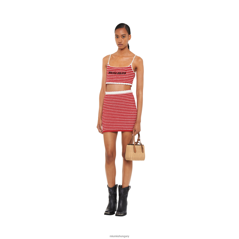 Miu Miu élénk stílusú Reinterprets csíkok és sportos inspirációk elbűvölő módon ebben az új Bouble Cotton Miniskirtben. A mini vonalai a kifejezetten kortárs formatervezést kísérik, míg a derékpánt kontrasztos színben befejezi az esztétikát egy kifinomult jegyzettel. Li>