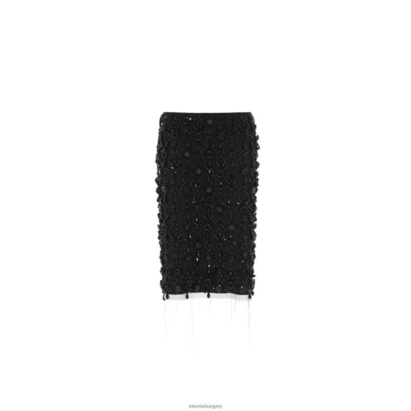 A MIU MIU 2022. tavaszi nyári kollekció referenciák és a valóság tanulmányozása, azzal a felhasználással, hogy mi létezik új, tiszteletlen sziluettek létrehozására új arányok és értékes részletek révén. A klasszikus testreszabás aláásott, és a klasszikus női ruhadarabok új jelentéseket hoznak. Egy ironikus, ultra-nőies kialakítás és hímzés, visszhangzó estélyi ruházati díszítések ezt a szoknyát nyers vágással jellemzik. > Bélelt ruhadarab