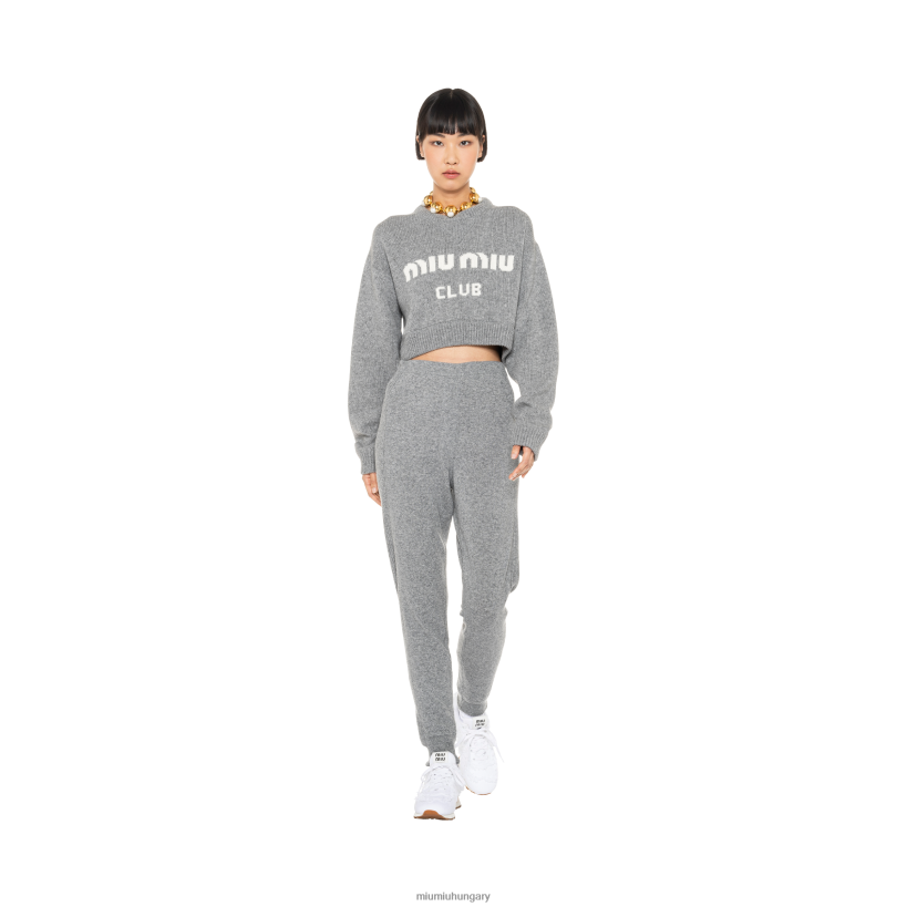 A sportruházat az új kollekció finom kasmírjában inspirálta ezt a tervezést. Az innovatív szellemet és az olasz know-how-t kombinálva a Miu Miu újragondolja ezt a fényűző fonalat, hogy hozzon létre kiváló minőségű kasmírot, amelyet modern csábító sziluettekhez használnak. sima kötés