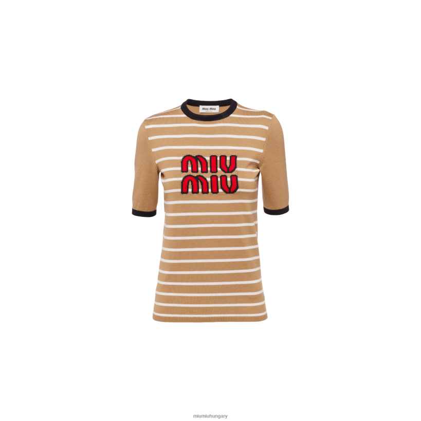 Miu Miu gyapjúszemélyzet-nyakú pulóver tevebarna – Miu Miu Hungary 826B06760