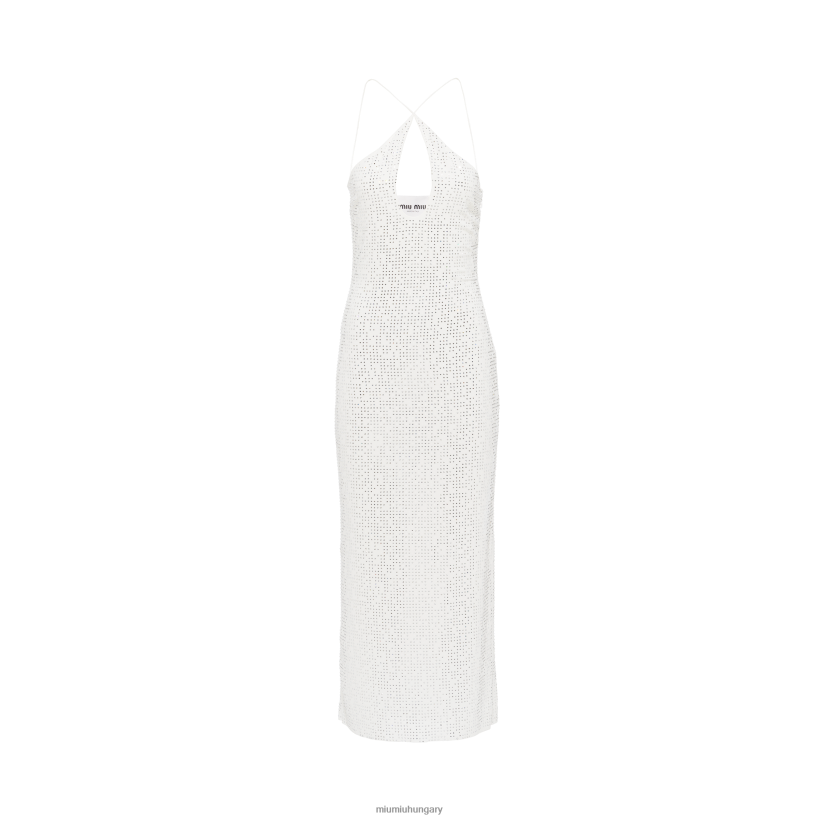 A romantikus sziluett meghatározza a finoman hímzett Georgette ruhát. A Miu Miu modern új felvételt kínál az estélyi ruházathoz szakértői kivitelezéssel. > Széles nyakkivágási és vállpántok