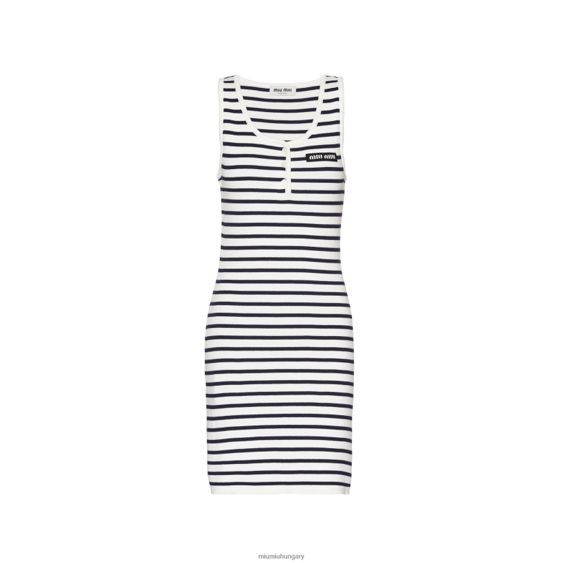 Miu Miu élénk stílusú Reinterprets csíkokat és sportos inspirációkat glam csavarral ebben az új pamut mini-ruhában. A klasszikus hüvely ihlette, és egy kifejezetten kortárs formatervezés kíséretében a ruha a kötött logó javítást tartalmazza, amely ikonikus jegyzettel tölti be az esztétikát. sima kötés