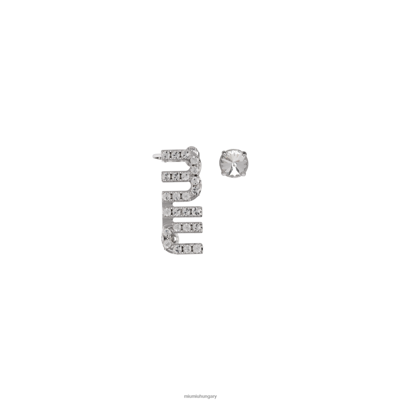 Az ikonikus betűkkel logó a drága új Miu Miu ékszergyűjtemény főszereplője, és új és más módon jelenik meg. A káprázatos kristályok ezeket a fülbevalókat aszimmetrikus kialakítással megvilágítják. > A hátulján lézert logo