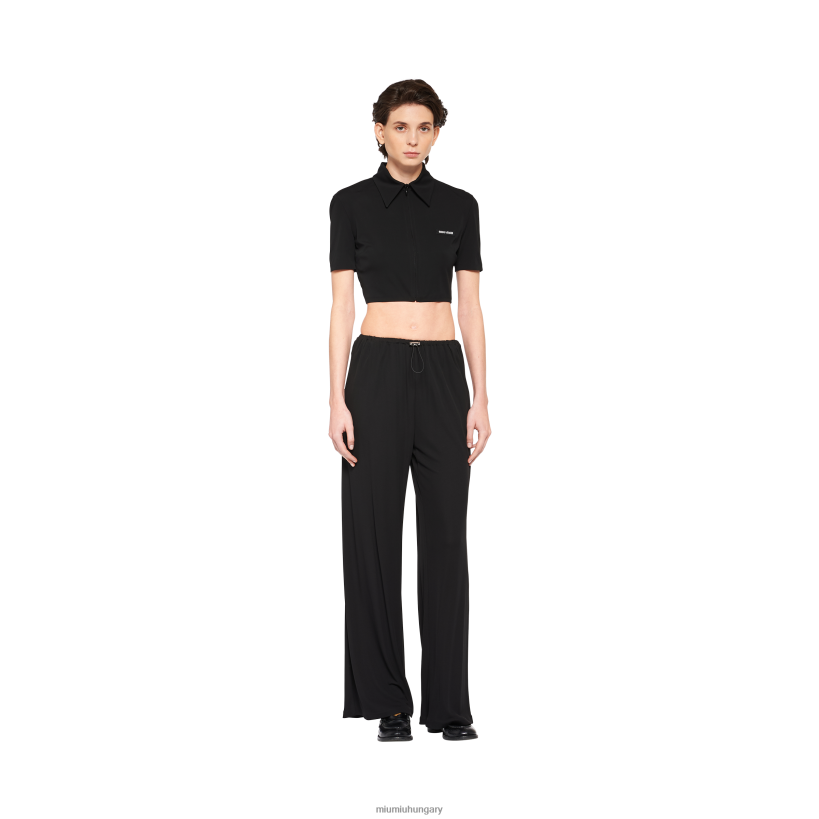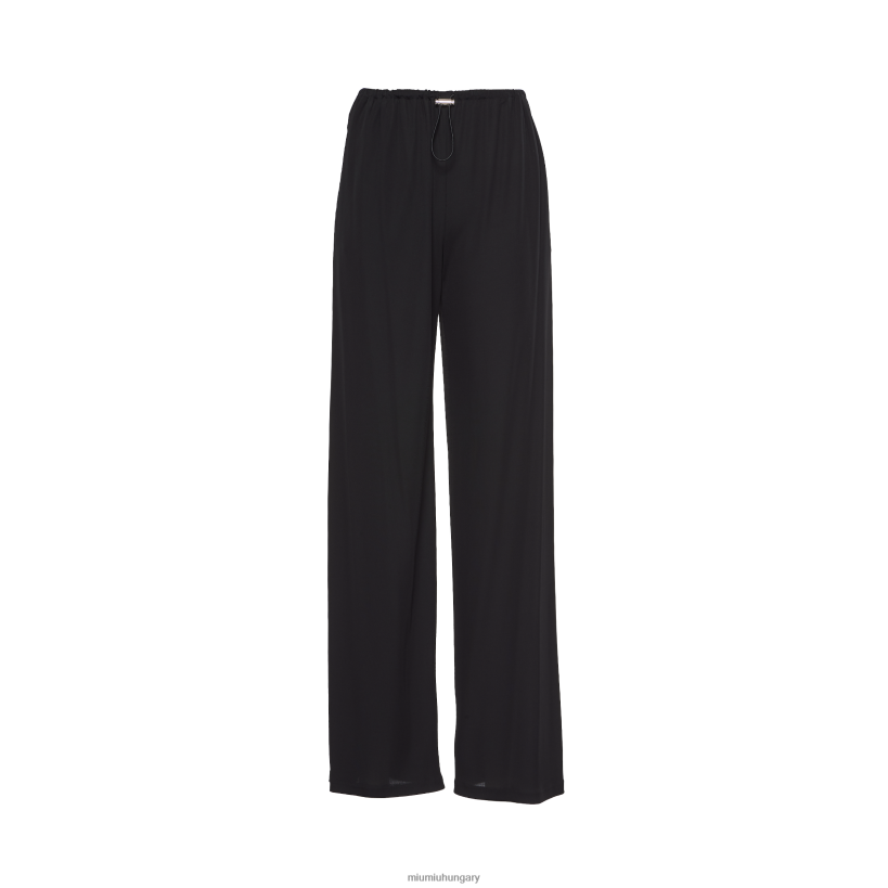 Ezen nadrág széles, minimalista vonalait fokozza az organzin speciális textúrája. A ruhadarab kialakítása kortárs, és az alkalmi nőiesség érzetét közvetíti.