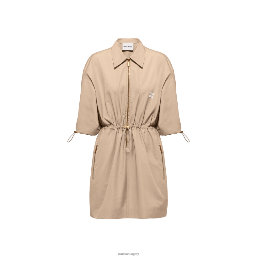 A segédprogram esztétikai és alkalmi íze jellemzi ezt az új pamut- és selyem mini-ruhát. A sportos részletek, mint például a derék és az uján lévő húzózsinór, hangerőt hoznak létre, és kiemelkednek a szövet sima, kompakt textúrájával szemben. A gumi logó javítás vonzó kontrasztdal fejezi be a stílust. ing gallér