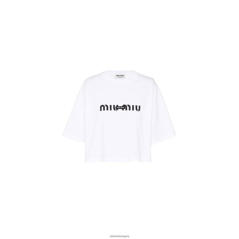A kifinomult részletek megvilágítják az új MIU MIU kollekciót, amely az utcai ruházati inspirációkat és a kifinomult felforgatást keveri. Ezt a kivágott pamut pólót a nyomtatott logóval díszítik, amely animálja annak egyszerű sziluettjét. /li>
