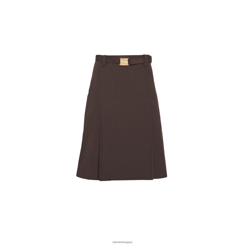Ez a Panama Cotton szoknya kifejezi a Miu Miu kifinomult, dinamikus és gondtalan nőiességét. Két rés, az egyik elöl és a másik a hátul, megkönnyítse a sziluettet, hozzáadva a mozgást. Az öv logóval díszített csatgal, amelyet a hasznossági kopás ihlette, ikonikus érintéssel töltse ki az esztétikát. > Bélelt ruhadarab