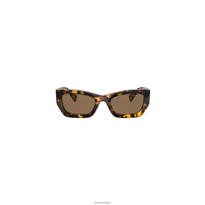 Ezek a téglalap alakú acetát napszemüveg, merész kialakítású, értelmezi a lázadó nőiességet. A megkülönböztető, alacsony profilú keret elülső részét a vastag templomok csuklópántjába integrált új Miu Miu függőleges logóval ékezetes. Tortoiseshell