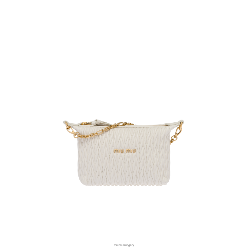 Elegáns Modern Allure jellemzi ezt a Nappa bőr mini táskát Matelasse motívummal. Az ikonikus Miu Miu varrott motívum és lánc vállszíj váll jellemzi a stílust. A betűkkel logó hangsúlyozza a kortárs sziluettet.