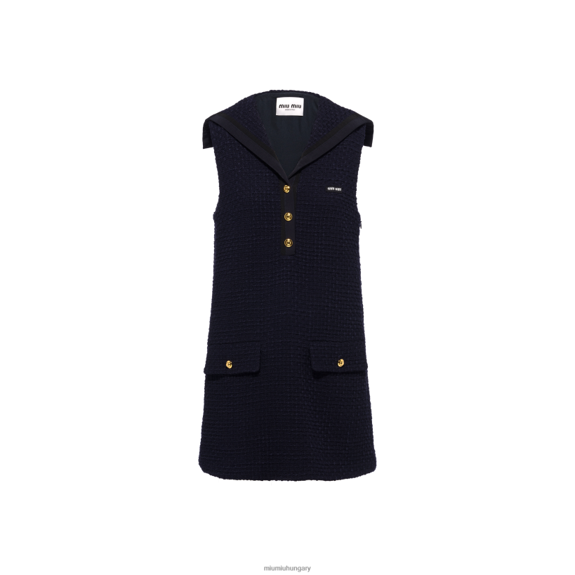 Klasszikus és kortárs, kifinomult és dinamikus, egyszerű és kifinomult: Az új Tweed Mini-ruhák finomított kontrasztjátékot tartalmaznak. A hagyományos motívum a V-nyakú tengerész gallérral együtt létezik, amely emlékeztet a tengeri világra, míg a minimalista vonalakat a fényes gombok és a szárnyas zsebek hangsúlyozzák. A mellkas logója diszkrét, de vonzó érintéssel tölti be a ruhát. li>