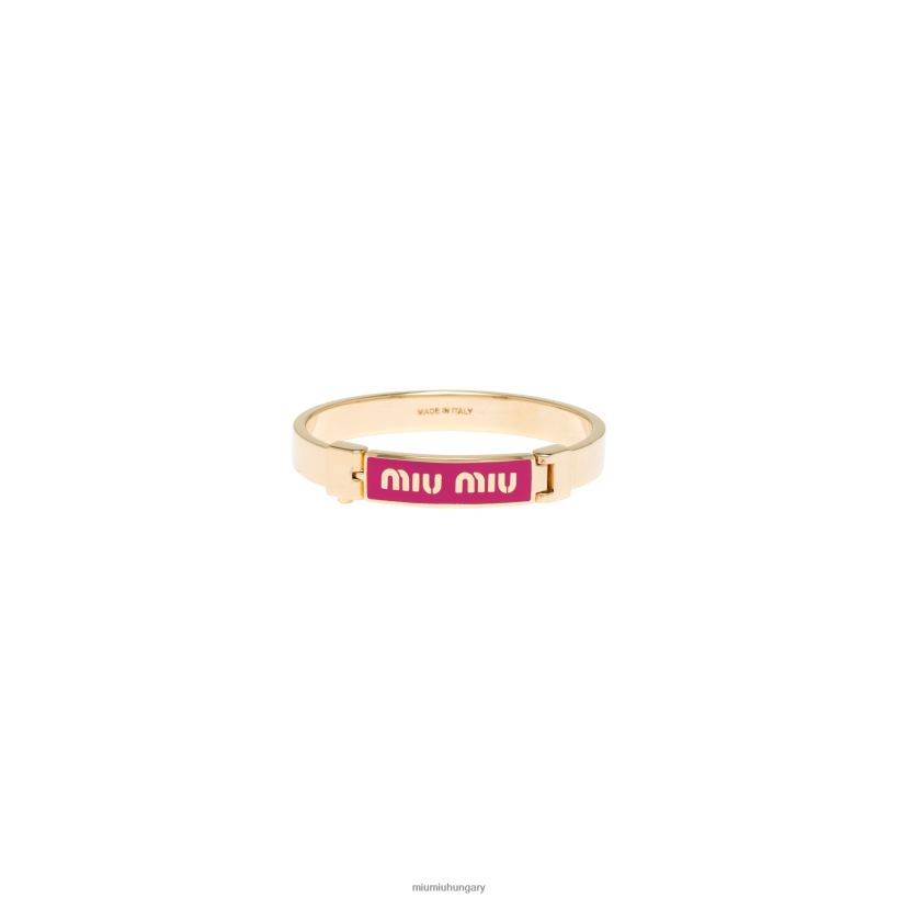 A Miu Miu logó a zománcozott fém karkötők válogatásának főszereplője. Kiemelkedik az ikonikus szimbólum, amely modern csábító tartozékot ad.